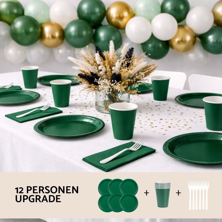 Das Dekoset „Essential Classic Green“ sorgt für eine frische und stilvolle Tischdekoration bei jeder Feier. Die natürliche grüne Farbgestaltung wirkt lebendig, modern und harmonisch und passt perfekt zu Geburtstagen, Partys und verschiedenen Festlichkeiten. Ideal für besondere Anlässe im kleinen Kreis und für alle, die eine schlichte und gleichzeitig frische Atmosphäre schaffen möchten.